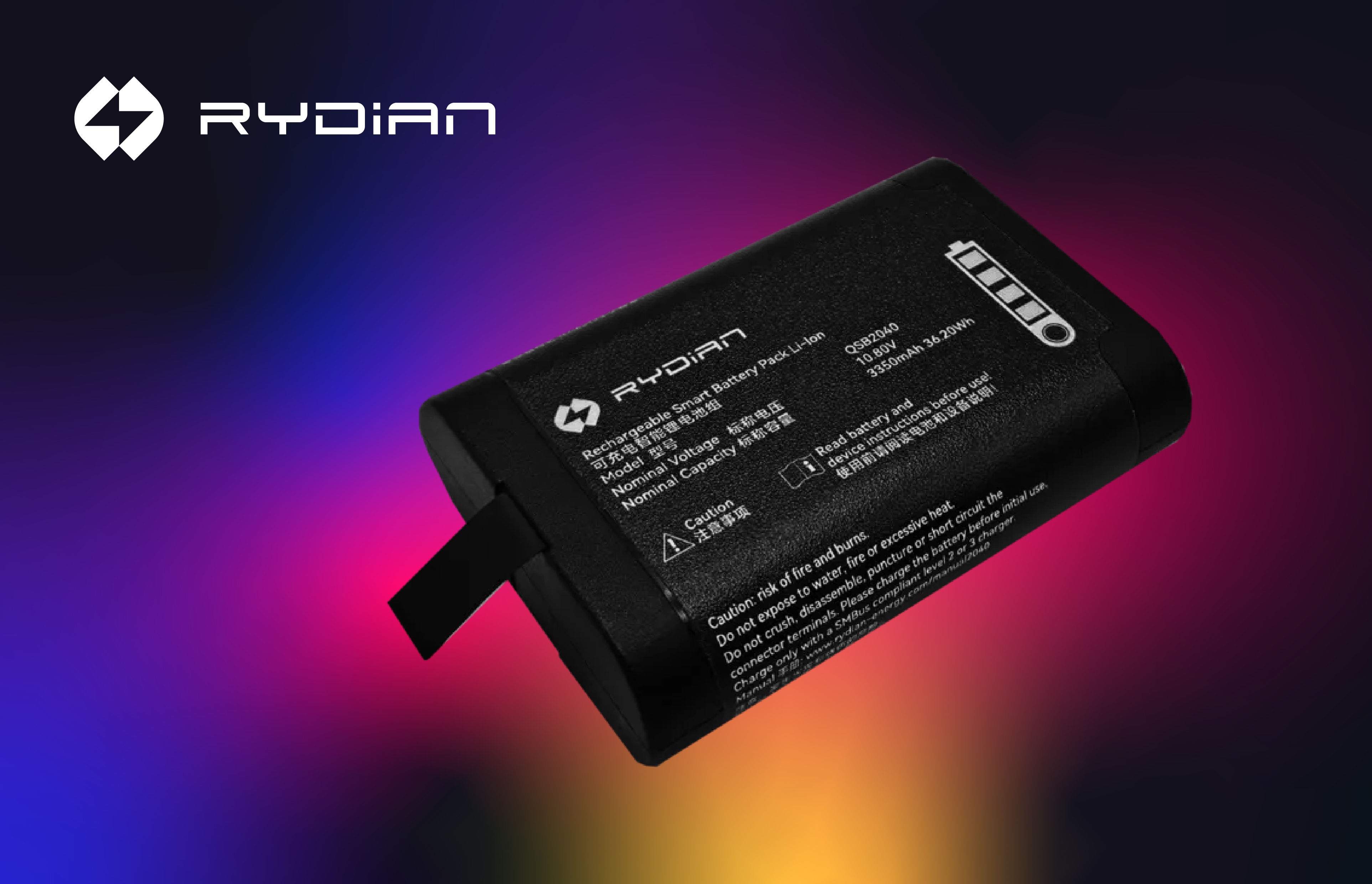 与消费电子类电池不同,RYDIAN电池从设计阶段就以“专业设备场景”为目标,具备稳定供应能力、国际认证体系,以及完整的电池管理系统(BMS)通讯支持。